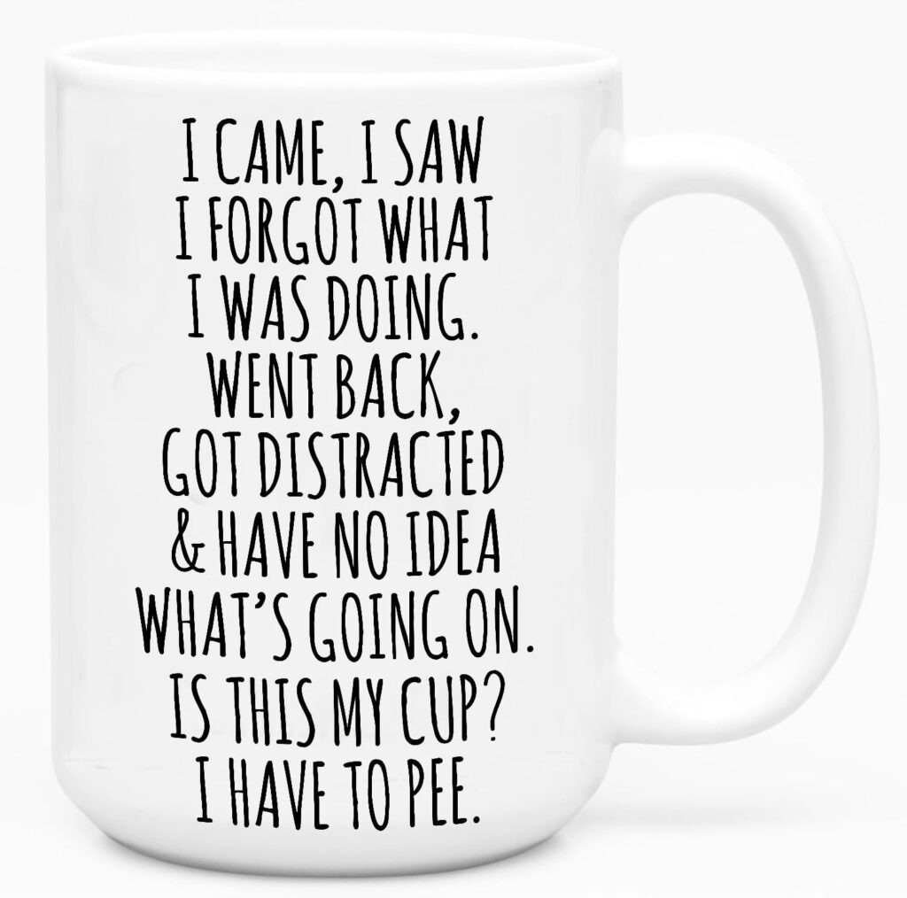 For a senior white elephant game who may get a chuckle out of this coffee cup!